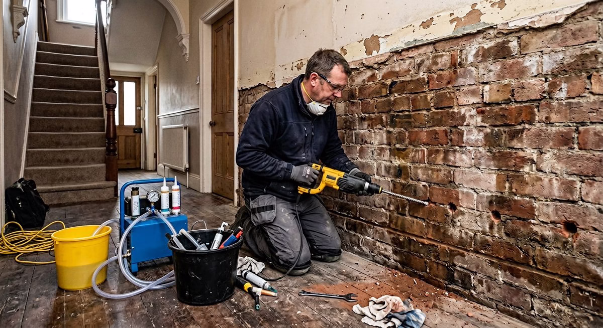 Injection alone typically costs £70–£100 per linear metre — roughly £1,500–£2,500 for a semi-detached house, plus £80–£150 per square metre for associated replastering. Quotes above £5,000 for a standard semi should prompt a second opinion.